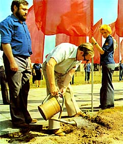 istuttaa ystävyyden lepän DDR:n kansanvaltaiseen maaperään.