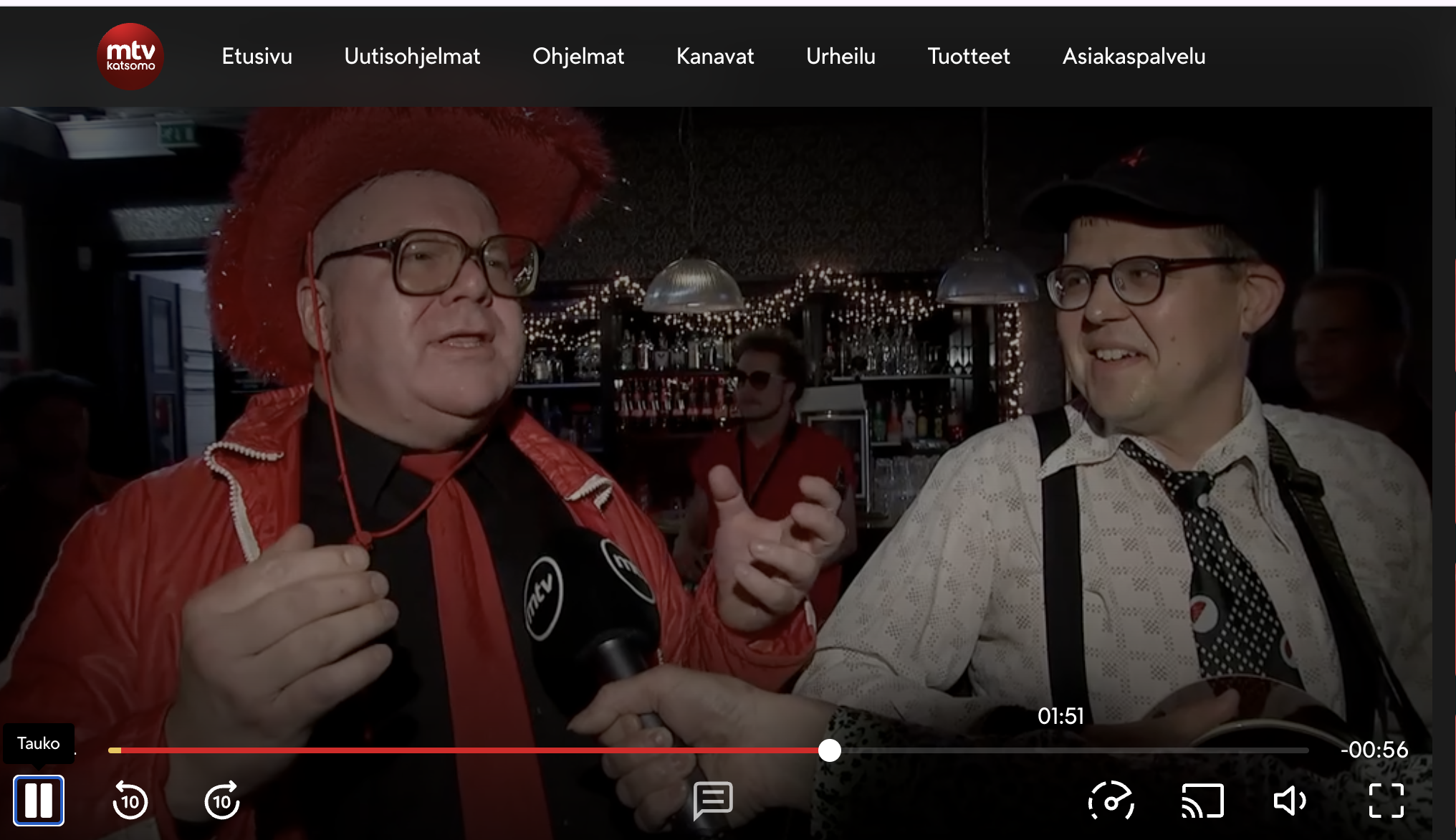 Ylioppilaslehti 1.3.1996 / no 4/96 The Red Stars Remake The Seventies The tongue-in-cheek band Punatähdet (The Red Stars), composed of Aatos Punainen (Jan Erola) and Varma Kosto (Jaakko Lyytinen,) are collecting quite a fan club these days making remakes of 70's Finnish communist songs. Lyytinen explains, "We're not trying to stir up a revolution, this is just heavy parody and, in a way, a perverse kind of tribute to Finnish communism of old. The seventies seems to be working again in the nineties". PAMELA KASKINEN Mukana on myös kesien 2001 ja 2002 telekkarjohjelma Kirvesmiehistä (Ikoni ja Indeksi) raapusteltuja juttuja (Vanikuvia telekkarista)