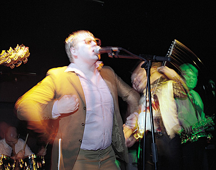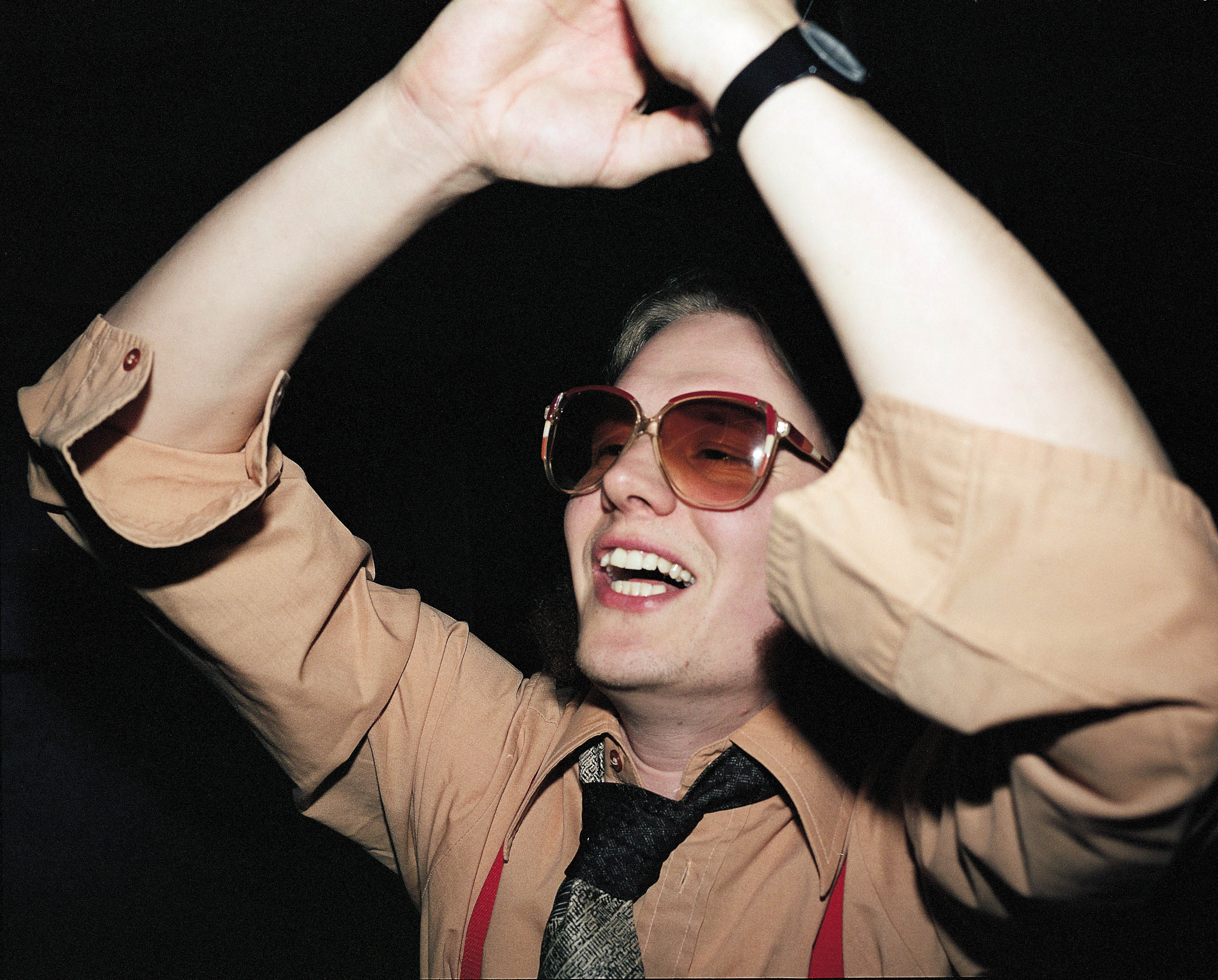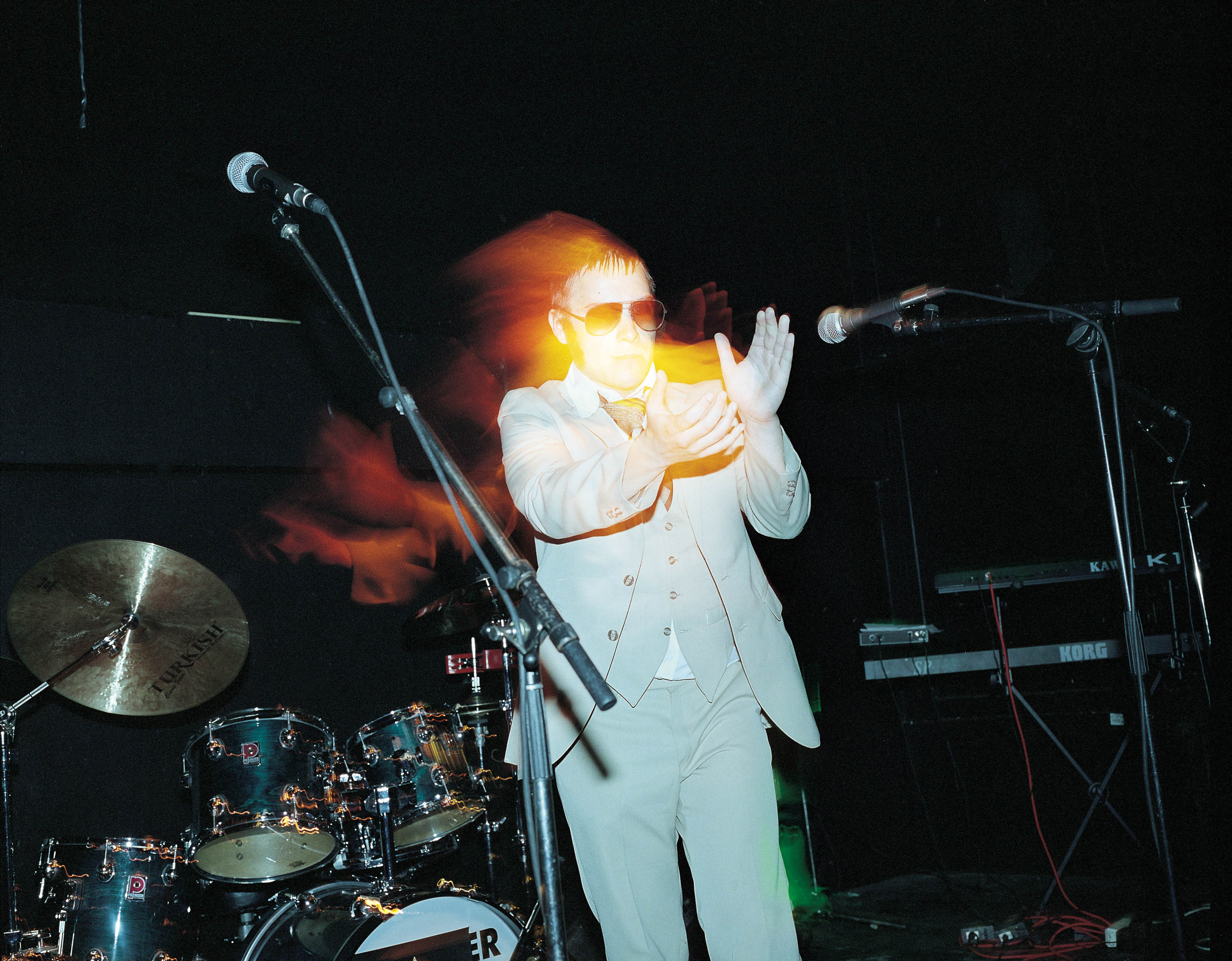 Valotaiteilija Ananias Punander lämmittää ylleisön. (ISO-ISO KUVA)