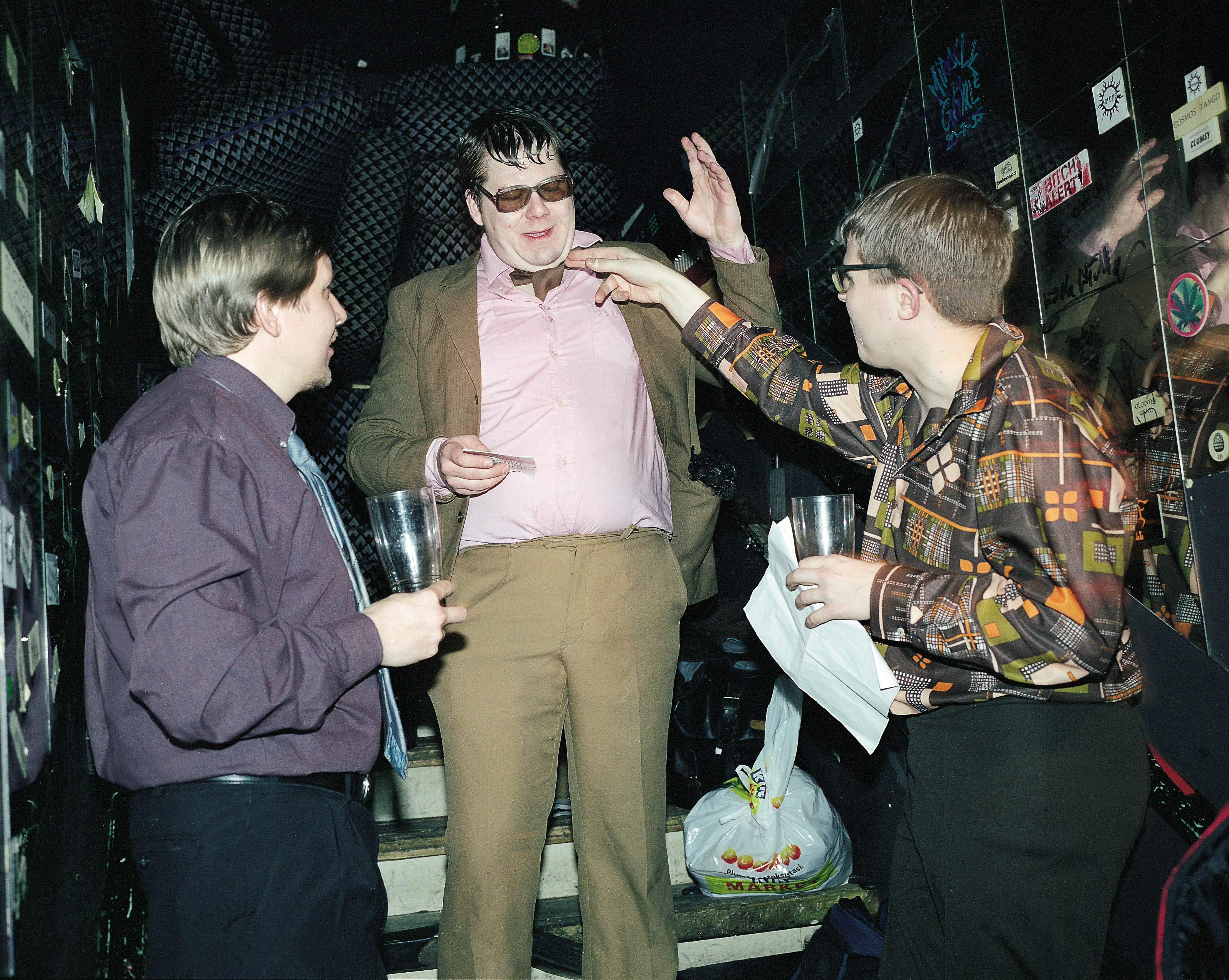 Semivinnaalin takahuone - elikkä portaikko, jossa olj hirmunen läjä vanhoja sohvatyynyjä. Herbert Huikko (vas, kom.) opastaa Aatosta (kesk, kom.) ja Varmaa (oik, kom.). (ISO-ISO KUVA)